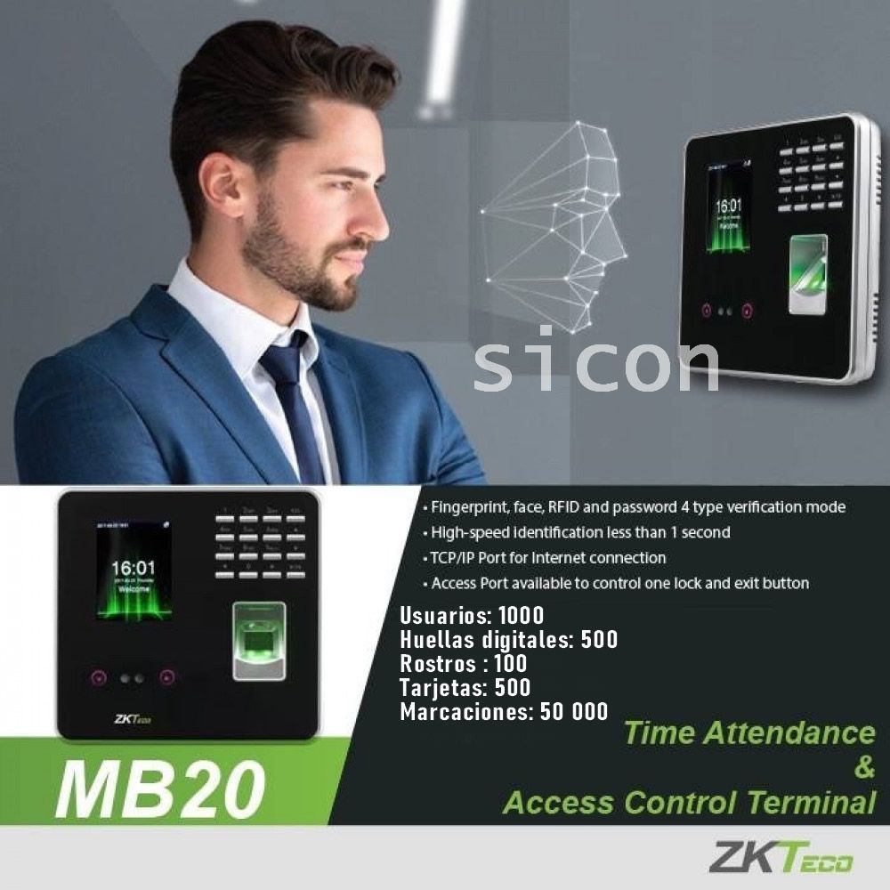 | Software soportado | BioTime 8.0 BioAccess Sicon 10.x |